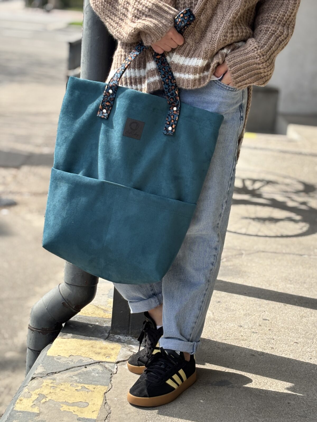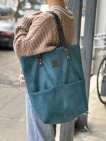 Pielęgnacja: zalecamy czyścić mokrą szmatką. W przypadku większych zabrudzeń: pranie ręczne (podczas prania uważać na skórzane rączki). Przed pierwszym użyciem torebkę można zaimpregnować (wystarczy bezbarwny spray do butów). Do torebki zamówić można dodatkowo skórzany pasek regulowany (akcesoria).