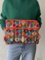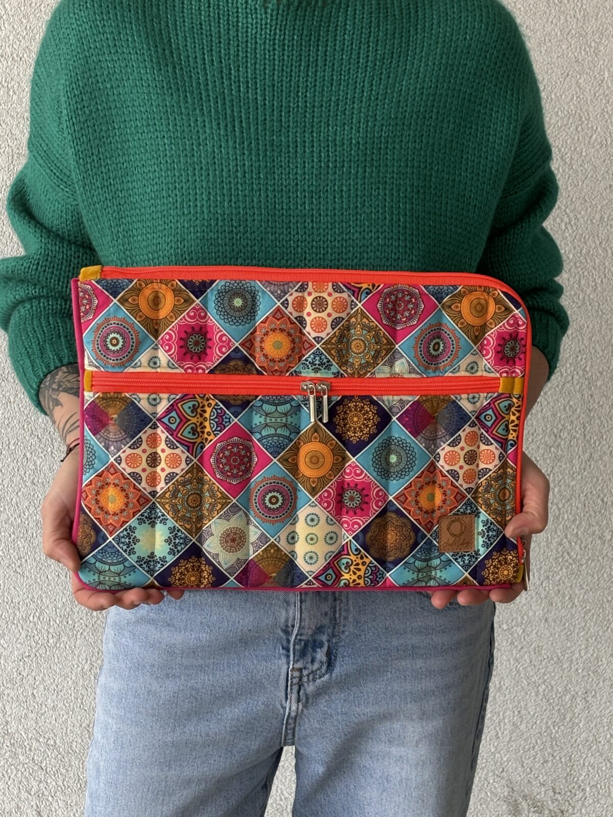 Etui jest przepikowane, dzięki czemu Twój laptop będzie w nim bezpieczny. Z przodu kieszeń. na zamek, podszewka wodoodporna. Całość wykończona lamówką, która nadaje mu kolorystyczny, wesoły akcent.