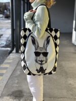 Rozmiar M: szerokość torebki mierzona na płasko – 44 cm wysokość torebki mierzona na płasko – 50 cm szerokość dna – 12 cm długość rączek – ok 60 cm |